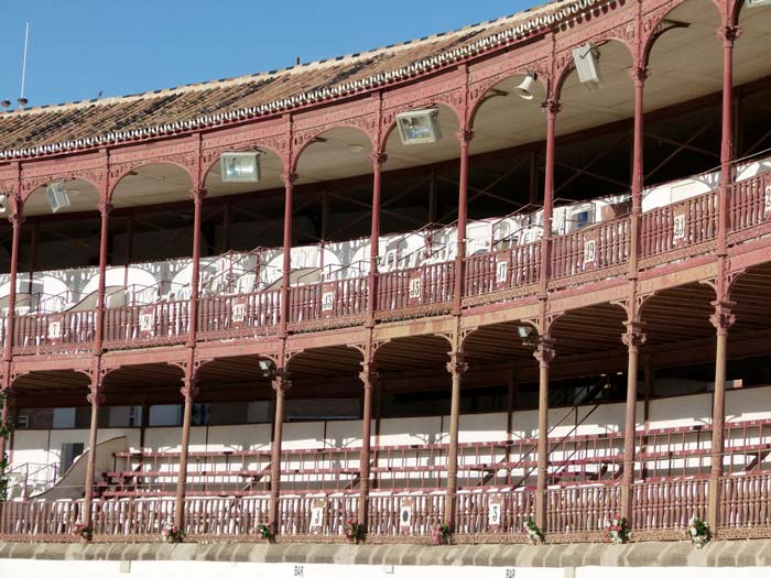 La Malagueta si innalza su due anelli sovrapposti, il primo in muratura (secondo il tipico stile degli anfiteatri romani), il secondo, invece, caratterizzato da una struttura di legno su telaio d’acciaio. La pianta dell’edificio è a forma esadecagonale con un diametro massimo di 52 metri; l’edificio presenta la cavalleria, il recinto per la prova dei cavalli, la sala dei toreros e l’infermeria. Pensate che può ospitare fino a 9000 spettatori. Nel suo complesso, la Plaza de Toros di Malaga oggi risulta fedele all’originale, mantenendo tutti quei tratti tipici delle più grandi arene da corrida spagnole. Ecco alcuni dettagli del monumento.